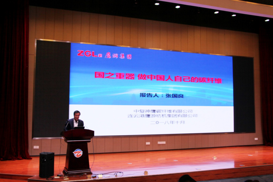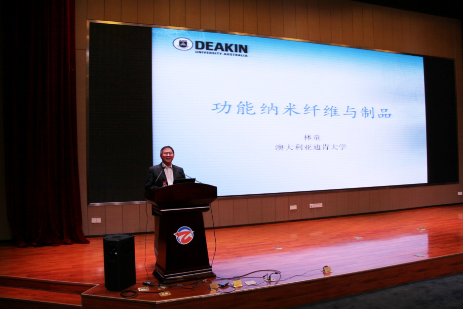 连云港鹰游纺机集团有限公司、中复神鹰碳纤维有限责任公司董事长张国良博士、澳大利亚迪肯大学教授林童博士分别作了“碳纤维的开发与应用”、“功能纳米纤维与制品”的专题报告。他们详实的报告内容让参会代表受益匪浅;他们热情洋溢的表达得到了参会代表的阵阵掌声。