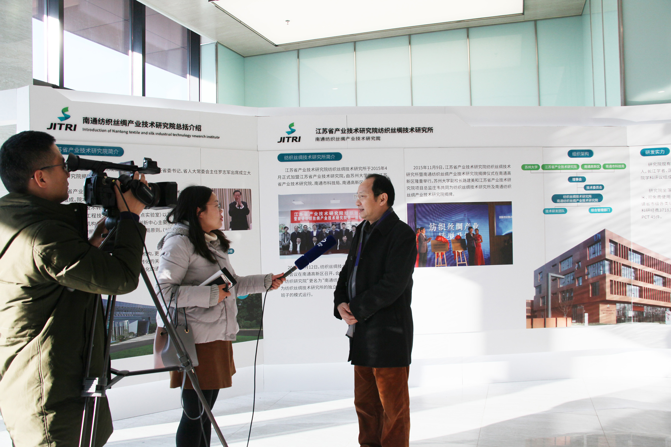 12月13日下午,乐竞平台(以下简称“纺研院”)特聘教授徐世清接受通州电视台采访,就“高效集约化现代养蚕关键技术转移转化示范项目”暨“中老绿色丝绸中心蚕桑示范园”的建设成效、进展等问题做了深入解答。有关采访将于近期在通州电视台播出。