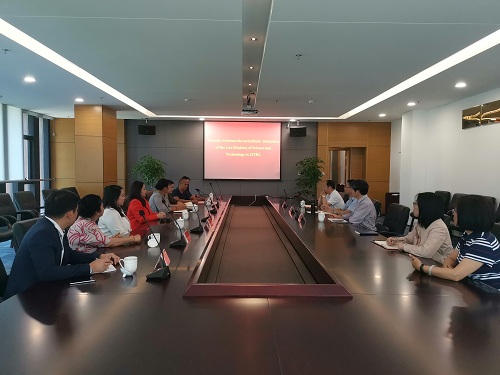 5月21日上午,乐竞平台执行院长居海滨在江海智汇园D1楼二楼会议室接待了老挝科技部官员布曼翁.苏莎莉女士(Somsanith BOAUMANIVONG)、老挝女双手公司总经理江月琴(Saysouda SAYASONE)、江月(Saysukountha SAYASONE)一行。研究院特聘教授徐世清陪同接待。