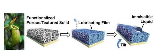 哈弗大学的研究员们决心使用仿生的手段改变这种渣渣般的现状。他们研究出了这种被叫做“SLIPS”的材料,它很是争了口气呀,不仅比现有的特氟龙等超滑材质更滑,甚至还超越了原版——猪笼草的滑溜性能。
