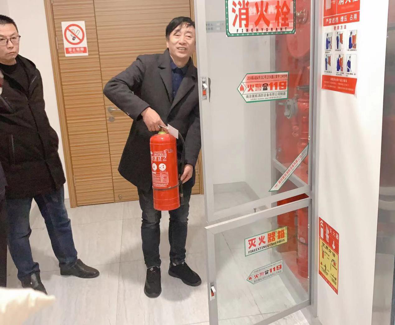 三:消防设施实操。灭火器的使用方法有四步,一提,二拔,三瞄,四压。距离火源3~5米处瞄准视为有效射程。讲解完毕后让在场人员亲自操作体验,提高实操灭火技能,确保在真正面对突发事故时能够发挥应急救援作用。