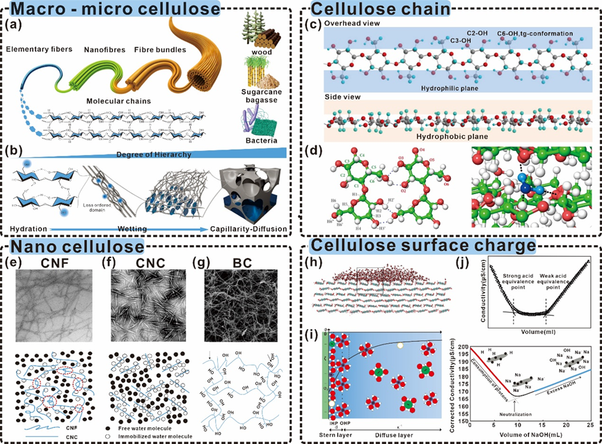 纤维素作为地球上储量最丰富的可持续生物高分子材料,具有独特的物理多维结构和可控的表面化学优势,广泛存在于绿色植物等生物质资源中。与其他介电材料相比,通过多尺度界面工程合理的物化调控,可赋予纤维素特定的耐受性,并在宽温度范围、高湿度、高辐射、高腐蚀、高冲击等各种极端环境条件下表现出较高的稳定性能。
