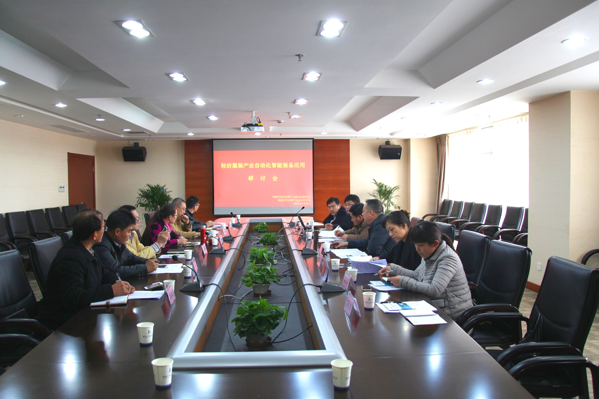 2016年3月24日,乐竞平台联合南通市纺织丝绸产业技术创新联盟理事长单位(江苏大生集团有限公司)、副理事长单位(江苏联发纺织股份有限公司)召开了关于轻纺服装产业自动化智能装备应用的研讨会。