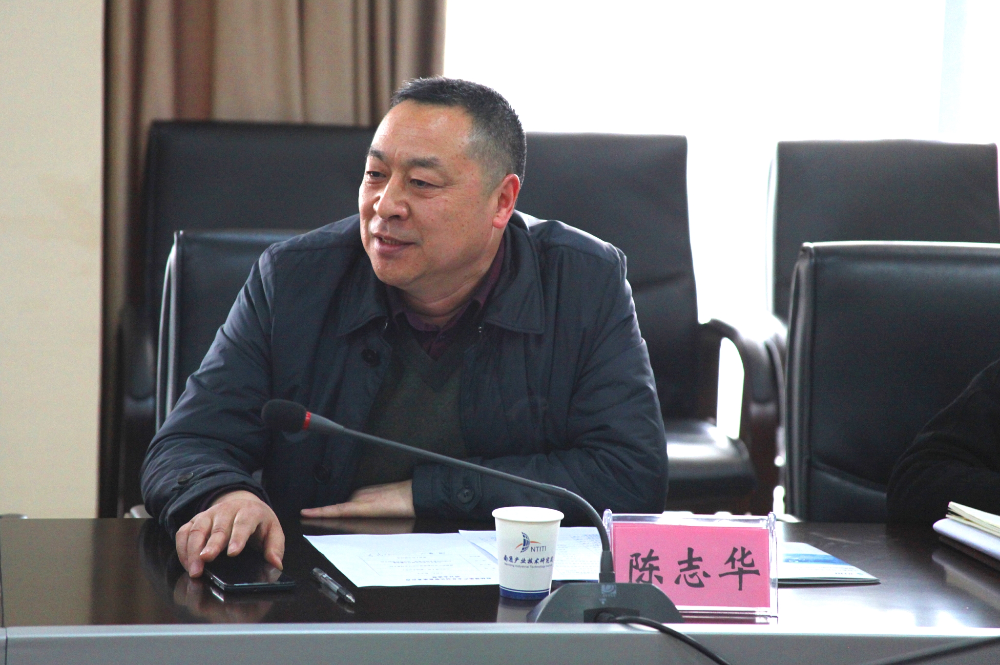 会议由南通市纺织丝绸产业技术创新联盟副秘书长、江苏工程职业技术学院纺染工程学院院长陈志华主持,南通市科技局、苏州澳拓美盛自动化设备有限公司、江苏大生集团有限公司、鑫缘茧丝绸集团股份有限公司、江苏联发集团股份有限公司、江苏三润服装集团股份有限公司、南通信一服饰有限公司、南通赛晖科技发展有限公司、南通东帝纺织品有限公司等单位参加。